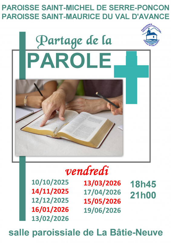 * Partage de la parole à 18h45 à La Bâtie-Neuve 2ème vendredi du mois,