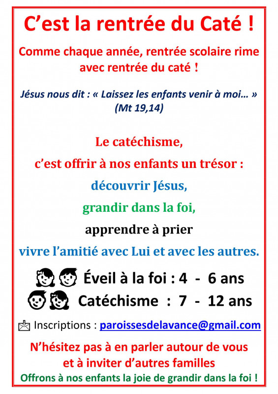Comme chaque année, rentrée scolaire rime avec rentrée du caté !